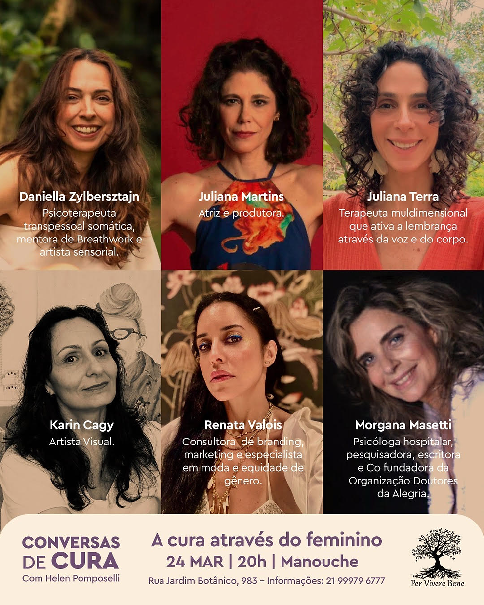 A sexta edição do talk Conversas de Cura, criado e facilitado por Helen Pomposelli, chega com a reconexão com a força e a vulnerabilidade do ser mulher , a leveza e coragem da menina, o poder e a intuição do ser mãe, devoradora da vida, despertadora de paixões, acolhedora por natureza e despertar as crenças ancestrais do ser feminino que pode curar o físico, energético e emocional.